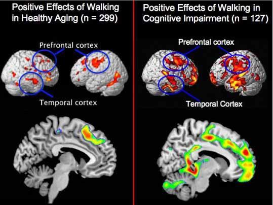 Not only does walking help people process traumatic memories and deal with stress, it also helps stave off cognitive and memory problems. How? By preventing brain shrinkage — an important factor in the fight against both mild cognitive impairment and Alzheimer’s disease. “Because a cure for Alzheimer’s is not yet a reality, we hope to find ways of alleviating disease progression or symptoms in people who are already cognitively impaired,” Dr. Cyrus Raji, from the Department of Radiology at the University of Pittsburgh in Pennsylvania, said to sciencedaily.com. “Volume is a vital sign for the brain. When it decreases, that means brain cells are dying. But when it remains higher, brain health is being maintained.”